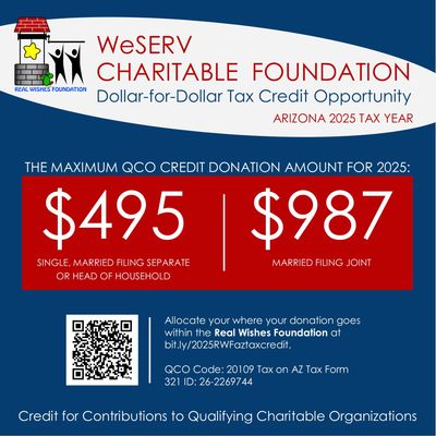 Supporting Real Wishes Foundation means supporting your community. Please consider Real Wishes Foundation, managed by West & SouthEast REALTORS® of the Valley, Inc., as a recipient of your tax credit donation this 2025 tax year. Talk to your tax preparer for the details of this tax credit.